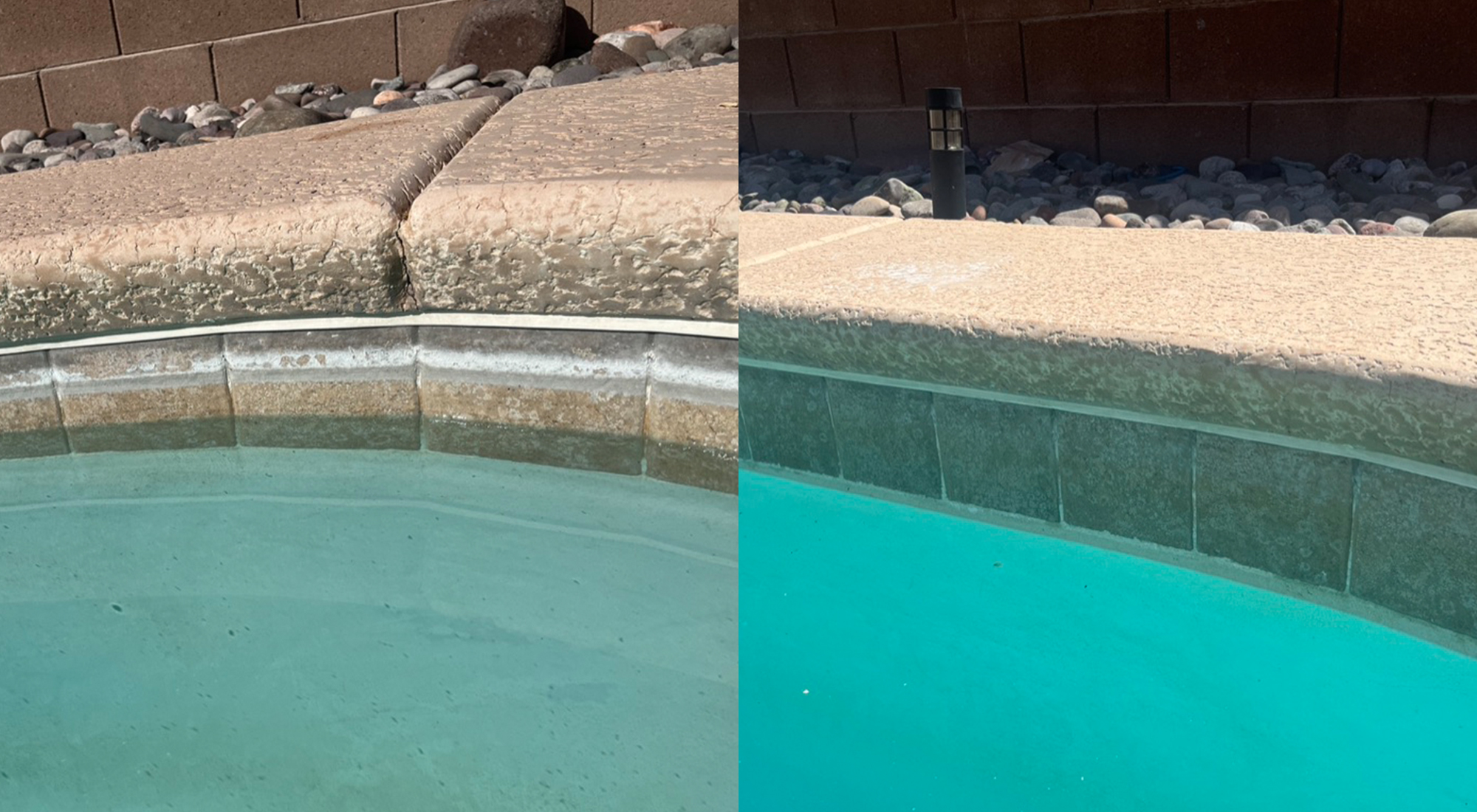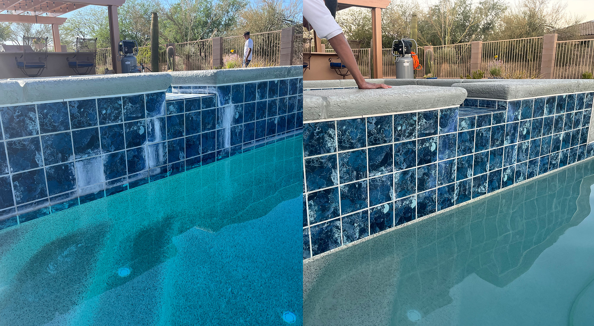 POOL TILE NEED CLEANING? No two pool tiles are the same - we've cleaned a number of pools, we can tell you each one requires a different process. The type of tile and the amount of build up means we can never use the same solution. Reach out to us, we'll teach you what we' we've learned - but ultimately, it requires some good old-fashioned elbow grease - and you want to enjoy your pool, not work on it - right?!